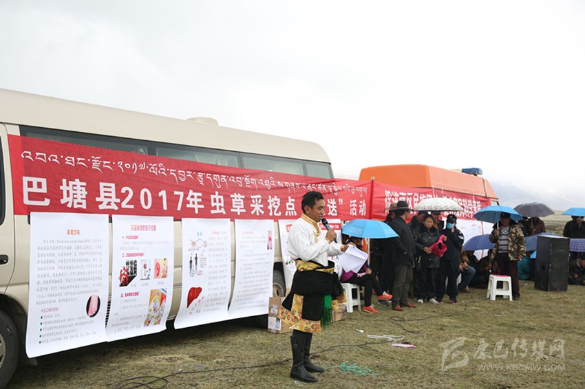 當天上午,巴塘縣委宣傳部牽頭開展的送法律、送文藝、送衛(wèi)生、送科技、送電影“五送”活動正在這里進行。現(xiàn)場熱鬧非凡,巴塘縣七個鄉(xiāng)的駐點工作組和采挖蟲草的群眾近2000人,在現(xiàn)場饒有興趣地 觀看該縣弦子藝術團表演的文藝節(jié)目。小品《結對認親》由于接地氣,深受群眾歡迎。演出間隙,縣級藏漢雙語宣講員就《安全生產(chǎn)法》《治安管理處罰條例》等進行了宣講。