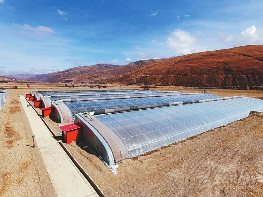 爐霍縣創(chuàng)新飛地扶貧模式,在海拔較低地勢(shì)平緩的地方建蔬菜大棚發(fā)展產(chǎn)業(yè),助貧困戶脫貧。陳麗 攝