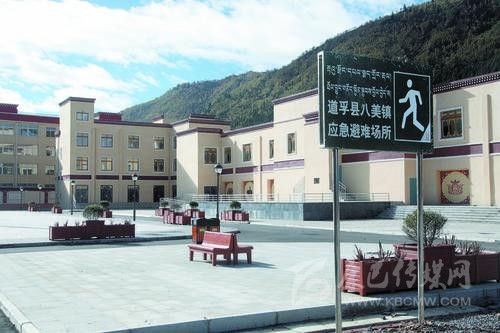 “這邊是避難廣場,設置有救災物資儲備倉庫等;廣場邊還有露天水儲備設備和供水設施,一旦遇到緊急情況,這些設施可以馬上啟用。避難廣場外是新建成的濱河路,這一帶曾經(jīng)是爛泥灘?!币驗闉暮笾亟ǎ悜c在道孚八美鎮(zhèn)一住就是3年,在介紹起八美鎮(zhèn)的災后重建成果時,他顯得有些自豪。