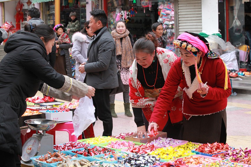 本網(wǎng)訊(縣委中心報道組 降初澤郎 黃蘭竣 文/圖)隨著春節(jié)和藏歷新年的臨近,丹巴縣年貨市場進入銷售旺季,濃濃的年味飄溢在全縣的大街小巷。到嘉絨步行街購置年貨,早已成為丹巴人的習慣,這幾天步行街就和成都的春熙路一樣熱鬧非凡,只見商家已將年貨擺在街邊,采購年貨者絡繹不絕,吆喝聲不絕于耳,店鋪里的年貨琳瑯滿目,各式各樣的春節(jié)飾品擺滿貨架,紅紅的中國結、大紅的燈籠、春聯(lián)、年畫,還有美味的糖果食物,音像店里飄出美妙歌聲......人們紛紛開始備年貨,迎新春。