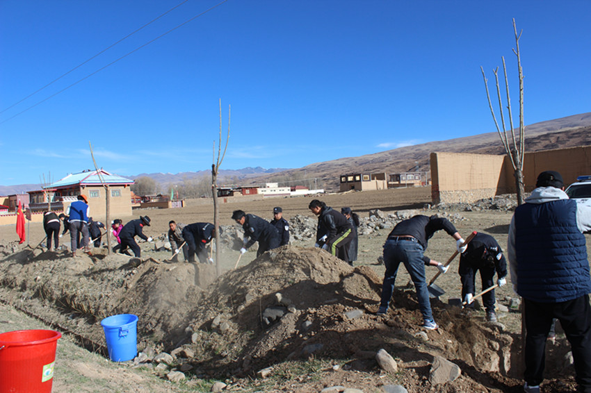 本網(wǎng)訊(縣委中心報(bào)道組 余應(yīng)瓊 文/圖)種下一片綠色,共建生態(tài)家園。4月12日,甘孜縣黨政領(lǐng)導(dǎo)、干部群眾紛紛組成義務(wù)植樹小組,開展大規(guī)模的綠化行動(dòng)。