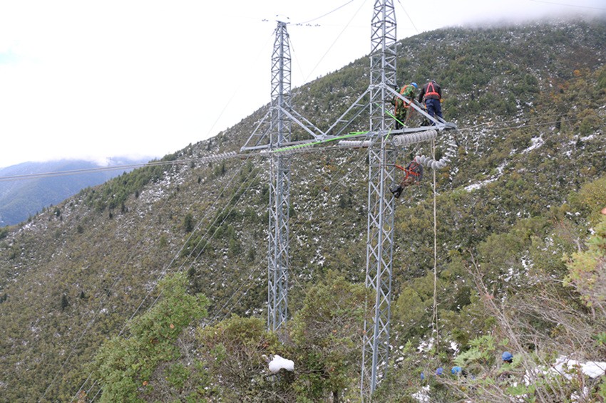 災情發(fā)生當晚,國網(wǎng)甘孜供電公司連夜組織多支應急搶修隊伍,共計人員120余人、工程搶險車22輛趕赴現(xiàn)場,冒著雨雪對故障線路進行巡視,查找故障點。由于夜間大霧加雪,能見度低,搶險車無法開上鄉(xiāng)間小路,搶修人員只能攜帶著工器具徒步巡視,搶修人員深一腳淺一腳地走在又冷又滑的雪地里,打著電筒仔細查看每一基桿塔、每一處開關。經(jīng)過連續(xù)8小時的奮戰(zhàn),終于找到故障點,于4日下午4時全面恢復供電。