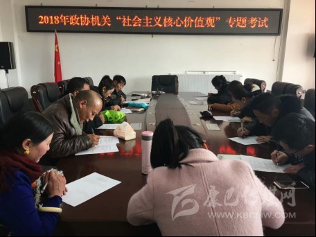 為書(shū)面測(cè)試廣大干部職工“社會(huì)主義核心價(jià)值觀”的實(shí)踐意義,11月29日下午2:00,2018年石渠縣政協(xié)機(jī)關(guān)“社會(huì)主義核心價(jià)值觀”專(zhuān)題考試,在縣政協(xié)黨組成員、副主席楊國(guó)華的監(jiān)考下開(kāi)始。其書(shū)面閉卷筆試為:?jiǎn)雾?xiàng)和多項(xiàng)選擇題及簡(jiǎn)答“三嚴(yán)三實(shí)”與“社會(huì)主義核心價(jià)值觀”內(nèi)容和論述題:一是結(jié)合藏區(qū)與自己的思想實(shí)際及政協(xié)工作特點(diǎn),有條理的闡述如何開(kāi)展“社會(huì)主義核心價(jià)值觀”實(shí)踐活動(dòng);二是踐行“社會(huì)主義核心價(jià)值觀”的重大意義及措施、方法等。通過(guò)一小時(shí)左右的臨場(chǎng)測(cè)試,應(yīng)考的政協(xié)機(jī)關(guān)干部職工含臨時(shí)工、駕駛員、實(shí)習(xí)生等,人人均遞交了滿(mǎn)意的答卷。