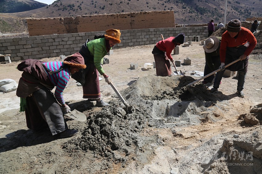 在工程實施中,全組的村民相互幫助,齊心協(xié)力建新房。“昨天大家?guī)臀野逊孔有薜冒桶瓦m適、漂漂亮亮的。我也來幫四郎曲西建房。這樣你幫我,我?guī)湍?,你幫他,要不了多久,我們這里家家戶戶都會很漂亮?!闭谠鹤永飻嚢杌覞{的村民格絨多登微笑著說。