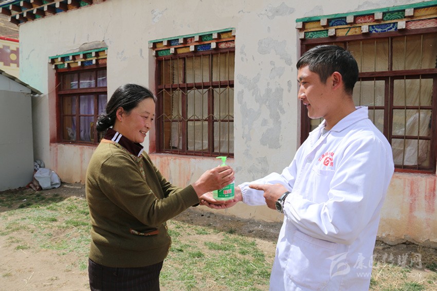 格勒桑登介紹道,他與同事在每個(gè)月上門(mén)隨訪發(fā)放洗手液時(shí),也會(huì)觀察大家洗手液的使用情況?!叭绻写迕駴](méi)有使用洗手液,我們就會(huì)耐心的提醒村民,要讓大家逐漸形成良好的生活習(xí)慣,目前,溫波鄉(xiāng)良好的行為習(xí)慣逐漸形成,我們也十分開(kāi)心?!?格勒桑登說(shuō)。