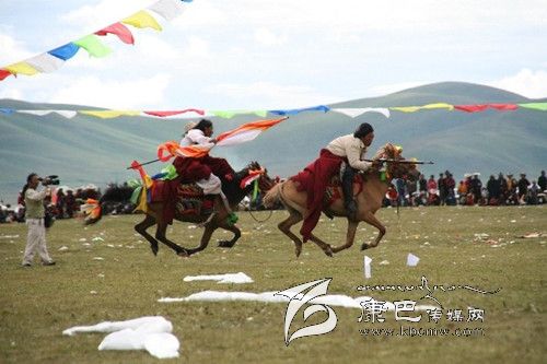 賽馬是廣大藏族群眾十分喜愛的一項(xiàng)體育運(yùn)動。隨著時代的發(fā)展,賽馬節(jié)的內(nèi)涵不斷拓展,已形成一種內(nèi)容豐富多彩的傳統(tǒng)文化。它不僅是農(nóng)牧民群眾縱情歌舞的聚會,交流農(nóng)畜產(chǎn)品的市場,而且是藏族群眾展示精神風(fēng)貌的舞臺。在所有民間傳承的藏族節(jié)日中,幾乎都少不了賽馬活動,并且此項(xiàng)活動有著悠久的歷史。圖為石渠牧民正在開展賽馬活動。 (李宏 攝影報道)
