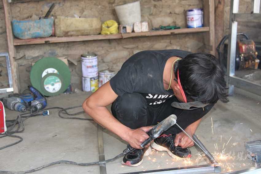 去年曲珠加入了理塘縣甲中馬鈴薯種植專業(yè)合作社,還成為了村級(jí)基礎(chǔ)設(shè)施管護(hù)員,人均年純收入達(dá)到4467元,順利實(shí)現(xiàn)脫貧。今年初,參加農(nóng)機(jī)維修和電焊技術(shù)技能培訓(xùn)后,曲珠開辦了一個(gè)家庭農(nóng)具維修店,主要維修拖拉機(jī)、摩托車、焊接鐵門和青稞鐵柜,今年4月開業(yè)以來,已有萬余元的收入。