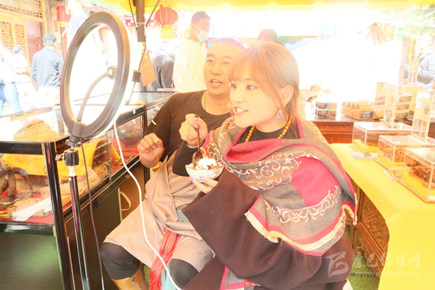 “大家請看我手中的酸奶,純天然,無添加,綠色產(chǎn)品,值得擁有,價格不高,15元一桶,快遞到家……”納塔鄉(xiāng)展銷點內(nèi)正在做帶貨直播。直播間里,擔任“帶貨官”角色的工作人員其麥拉姆毫不怯場,說村情、講故事、推產(chǎn)品,為網(wǎng)友介紹了納塔的系列高原特色優(yōu)質產(chǎn)品。云端上遇見的特殊主播,讓直播間瞬間畫風突變、互動頻頻。留言區(qū)也如流水線一般,源源不斷地流動著網(wǎng)友的互動。