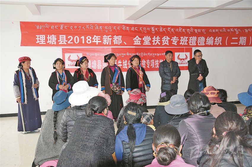 “群眾技能缺乏,市場競爭力弱”是理塘部分群眾貧困的主要原因之一。亞吉公司始終以“傳授技能,一心為民致富”的初心,深入抓好群眾技能培訓。響亮地提出了“掙錢脫貧致富奔康不落一戶”的口號,與縣就業(yè)局和鄉(xiāng)鎮(zhèn)密切協(xié)同,制訂了《貧困牧民群眾手工藝技能培訓實施方案》,共同實施了“技能引領脫貧攻堅奔康富民惠民”工程。開展了“培訓+技能+回收”的新型手工紡織技能培訓,堅持“紡織在群眾,技能在傳授”的方針,從使用手工紡織工具、細致分線精細紡織、推搡紡線等方面進行了全方位的技能培訓,幫助100余名群眾,獲得了牦牛絨手工紡織技能。同時,為更好地促進群眾增收致富,還積極提供紗線給群眾紡織,常年回收手工藝紡織品—牦牛絨氆氌布料1700余米,價值達10.2萬元,實現(xiàn)了群眾“致富有路勤為徑,掙錢致富在家里”的目標。
