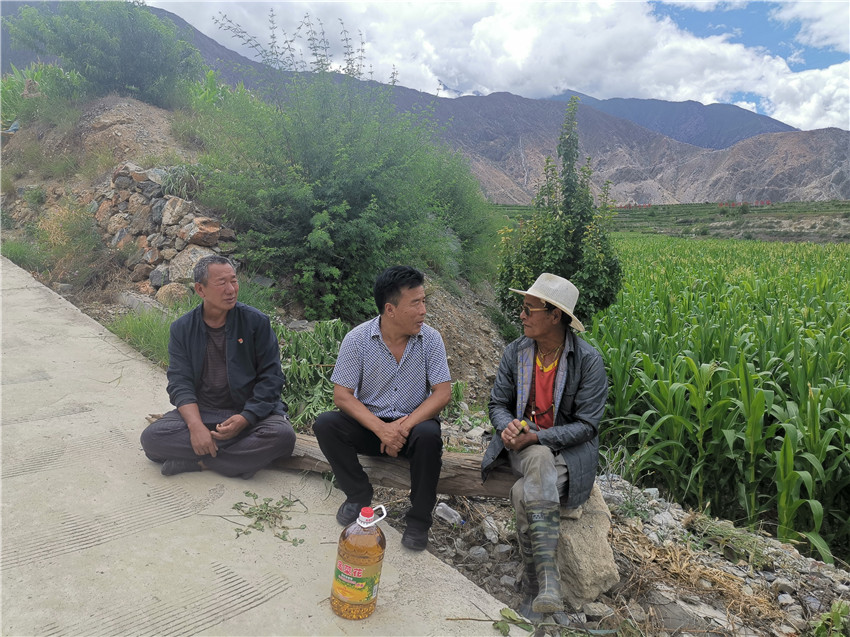 圖為得榮縣干部向聯(lián)誼家庭成員了解今年收成情況。