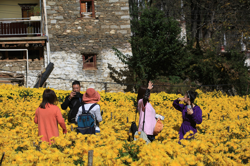 游客在菊花地里游玩。 洛桑達(dá)瓦 攝