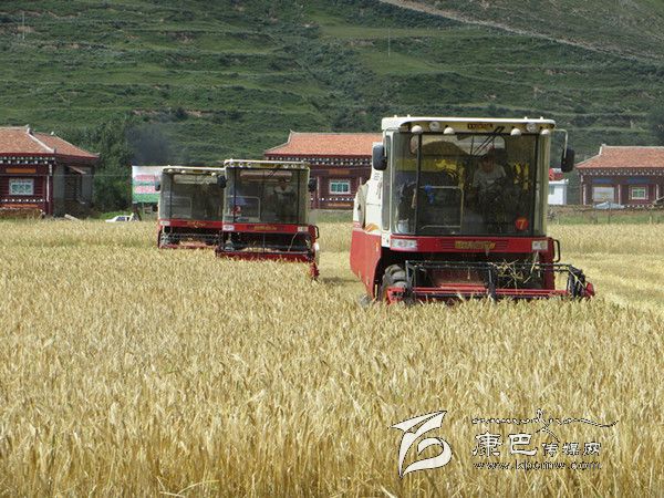 本網(wǎng)訊(胡筱紅 龍正芳 文/圖) 高原的八月是絢麗多彩的時節(jié),是糧食收獲的季節(jié)。爐霍縣300畝全程機(jī)械化青稞作業(yè)示范片項目機(jī)收工作于8月20日正式啟動,共出動大型聯(lián)合收割機(jī)5臺、拖拉機(jī)5臺同時作業(yè),正常情況下一臺收割機(jī)一天可以收割65至70畝,青稞示范片不出5天就能完成收割。對比以往的種植和收獲方式,全程機(jī)械化作業(yè)從播種到收獲帶來的社會效益及經(jīng)濟(jì)效益都遠(yuǎn)遠(yuǎn)高于傳統(tǒng)種植方式。