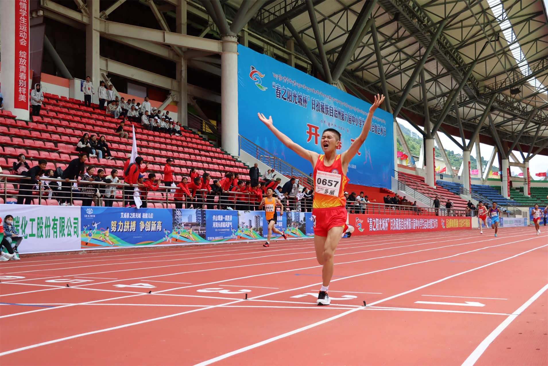 本網(wǎng)訊 6月24日上午11時30分,康定北門體育場歡呼震天,初中女子組4X400米接力決賽結(jié)果揭曉,標(biāo)志著甘孜州第六屆中小學(xué)生運(yùn)動會暨藝術(shù)節(jié)田徑類比賽項目全部圓滿收官。
