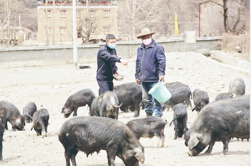 外來幫扶固然重要,但還必須解決自身“造血”功能。得知澤仁瓦吉家養(yǎng)了幾頭豬,是全村唯一的養(yǎng)豬戶,劉濤專門到他家了解情況,幫他想辦法、出點子,鼓勵他擴大養(yǎng)殖規(guī)模,同時多方溝通協(xié)調(diào),為他爭取到3萬元的免息扶持資金。2016年,澤仁瓦吉家的養(yǎng)豬場辦起來了,當(dāng)年就飼養(yǎng)了100多頭藏香豬。2017年第一批豬出欄,澤仁瓦吉獲得了高達10萬元的凈利潤。