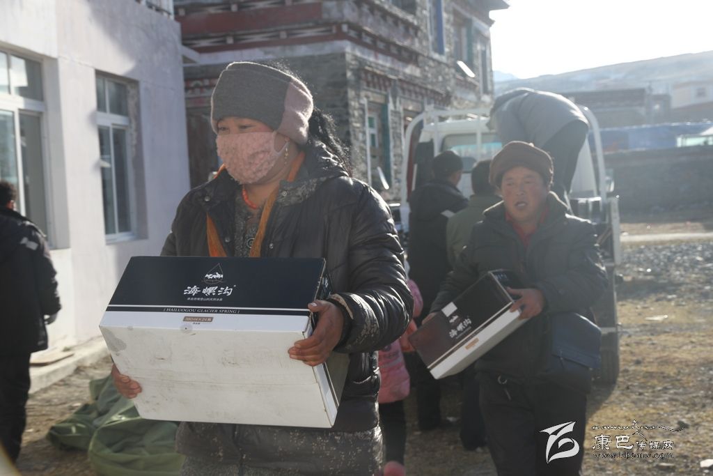 途中見到色曲卡、塔公、各日瑪3村民房均有不同程度損害,但尚未發(fā)現(xiàn)垮塌。在塔公鄉(xiāng)黨委政府的接應(yīng)和協(xié)助下,早上8點30分,50頂帳篷已全部發(fā)放到色曲卡村,50箱方便面、10箱牛奶、以及70件四川康定機場集團旗下海螺溝冰川水業(yè)生產(chǎn)的礦泉水等物品也分別發(fā)放到了塔公、各日瑪兩村。
