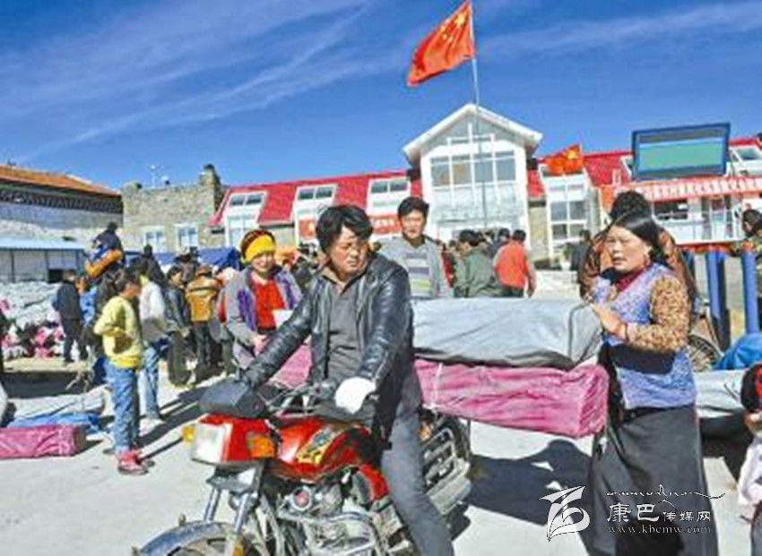 11月26日,康定縣塔公鄉(xiāng)江巴村受災村民將在村委會領到的救災物資拉回家。 吳傳明 攝