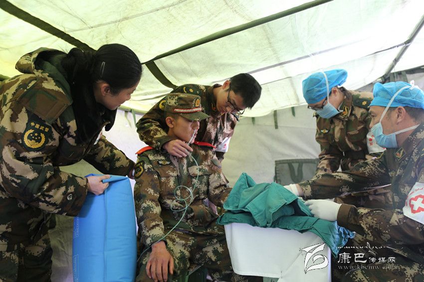 武警二支隊一中隊上等兵楊貞川在搭建板房時,不慎左手拇指深度劃傷2CM,武警四川省總隊醫(yī)院周續(xù)翔副主任與何佳燕護(hù)士長對楊貞川實(shí)施清創(chuàng)縫合術(shù)。術(shù)中,小戰(zhàn)士突感頭暈,考慮為輕度創(chuàng)傷性休克,鄭聯(lián)護(hù)士長立即拿來氧氣袋給予吸氧,并像母親一樣關(guān)心安慰她。手術(shù)在4名醫(yī)務(wù)人員的共同努力下順利完成,手術(shù)完成后醫(yī)護(hù)人員向其發(fā)放了消炎藥、并囑其按時換藥,到期扯線。 記者楊珂攝影報道