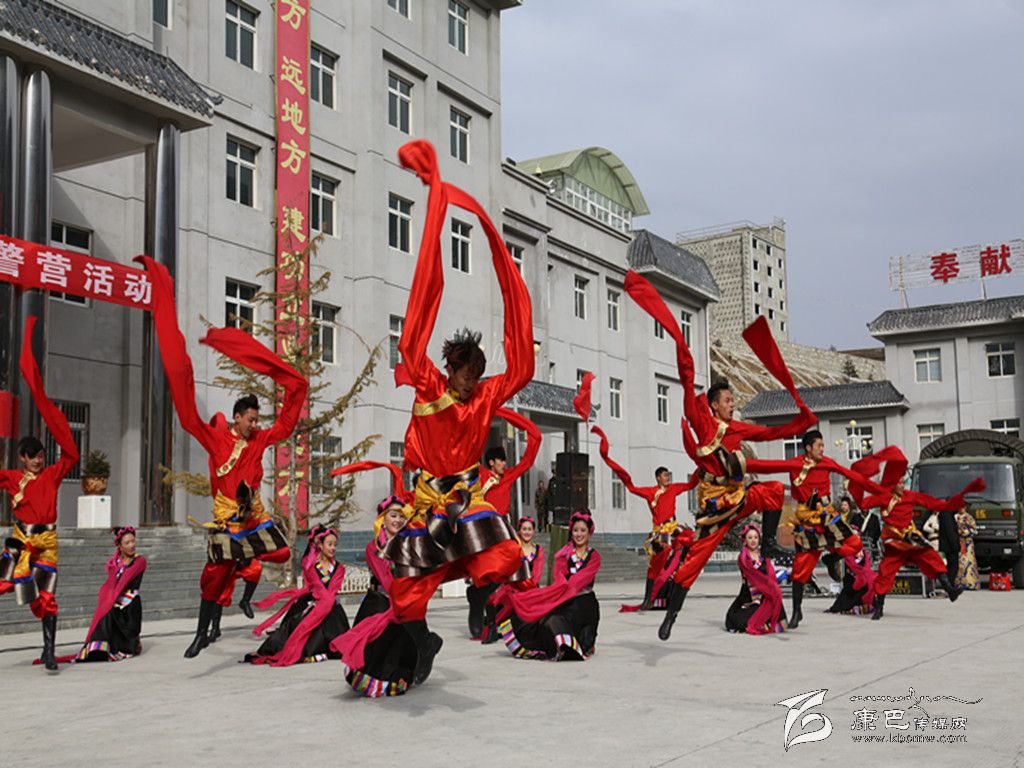 演出活動在充滿藏族民族風(fēng)情的男女群舞《吉祥頌》中拉開帷幕,節(jié)目一開始,演員們激昂的熱情、優(yōu)美的舞姿給觀眾們帶來了美的享受,女子獨(dú)唱《納西情歌》《套馬桿》、男生獨(dú)唱《吉祥謠》、女子群舞《情灑康巴》、男子群舞《青春踢踏》、女子快板《甘孜兒女心向黨》等精彩節(jié)目相繼登場,將演出活動推向一個(gè)又一個(gè)高潮。特別是由支隊(duì)官兵表演的民族舞蹈《野人狂歡》、表演唱《當(dāng)兵就是帥》等精彩節(jié)目,贏得了觀眾們的陣陣喝彩。雖然天氣異常寒冷,天空還不時(shí)飄起了雪花,但演員們卻一直以飽滿的激情、嫻熟的技藝,為官兵們獻(xiàn)上了一個(gè)又一個(gè)精彩的節(jié)目。整場演出抒發(fā)了駐地群眾對人民子弟兵的深厚情誼和感激之情,表達(dá)了他們對人民子弟兵扎根高原、無私奉獻(xiàn)的欽佩之情,他們用自己的精彩表演,向人民子弟兵致以最親切的問候和最誠摯的敬意。