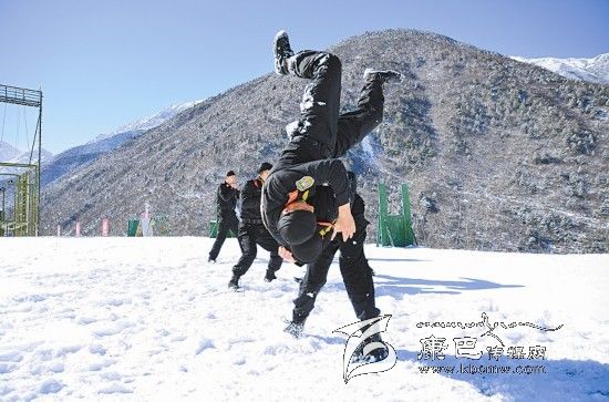 武警官兵康定雪原練兵忙 練擒拿洗雪浴
