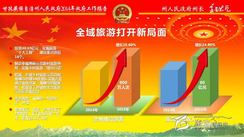 2015年是實(shí)施“十二五”規(guī)劃的收官之年,是承接“十三五”規(guī)劃的奠基之年,是全面深化改革的攻堅(jiān)之年,是落實(shí)政府“1+8”文件的關(guān)鍵之年。政府工作的總體要求是:以黨的十八大和十八屆三中、四中全會精神為指引,貫徹落實(shí)州委十屆六次全委(擴(kuò)大)會議精神,堅(jiān)持“統(tǒng)籌聯(lián)動、穩(wěn)中求進(jìn)、加快發(fā)展”工作基調(diào),以全域旅游統(tǒng)領(lǐng)經(jīng)濟(jì)社會發(fā)展,以民生改善凝聚民心民力,以災(zāi)后重建塑造美好家園,以依法治州促進(jìn)穩(wěn)定和諧,推動經(jīng)濟(jì)社會持續(xù)健康發(fā)展。