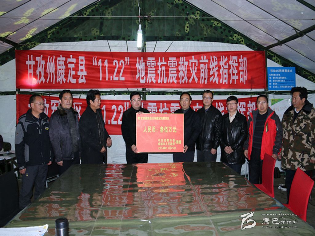 州委書記胡昌升接受成都市向康定縣“11·22”地震災區(qū)捐款。