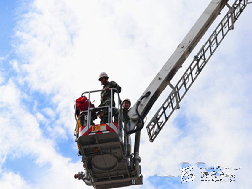 體驗(yàn)登高。DG-32C登高平臺消防車性能測試和維護(hù)保養(yǎng)工作完成后,在甘孜消防支隊司令部參謀長劉乾德和一名登高車駕駛員帶領(lǐng)下筆者親身體驗(yàn)了一次登高作業(yè)。按照操作規(guī)程,戴好防護(hù)頭盔,扎上綁有安全繩的防護(hù)腰帶,登高平臺臂正式啟動。駕駛員操作技術(shù)十分嫻熟,40秒后,登高平臺穩(wěn)穩(wěn)的停在了28米的高空。站在平臺上俯瞰著下方,一陣清風(fēng)刮過,平臺出現(xiàn)了輕微搖晃,當(dāng)時筆者十分緊張,手掌緊緊抓住了平臺上的防護(hù)欄。“高空作業(yè)出現(xiàn)這種情況屬于正?,F(xiàn)象,心里一定要平靜,要相信消防員的專業(yè)技術(shù),也要相信消防裝備的安全系數(shù)”駕駛員對筆者說道。隨即,在駕駛員的操作下,平臺緩緩下降至地面,筆者頓時松了口氣,并向操作登高平臺臂的駕駛員表示剛才感覺十分驚險。當(dāng)?shù)弥{駛員對DG-32C登高平臺消防車經(jīng)過專業(yè)的技術(shù)培訓(xùn),并具有3年多的駕駛及操作經(jīng)驗(yàn)時,筆者頓時心生敬畏。