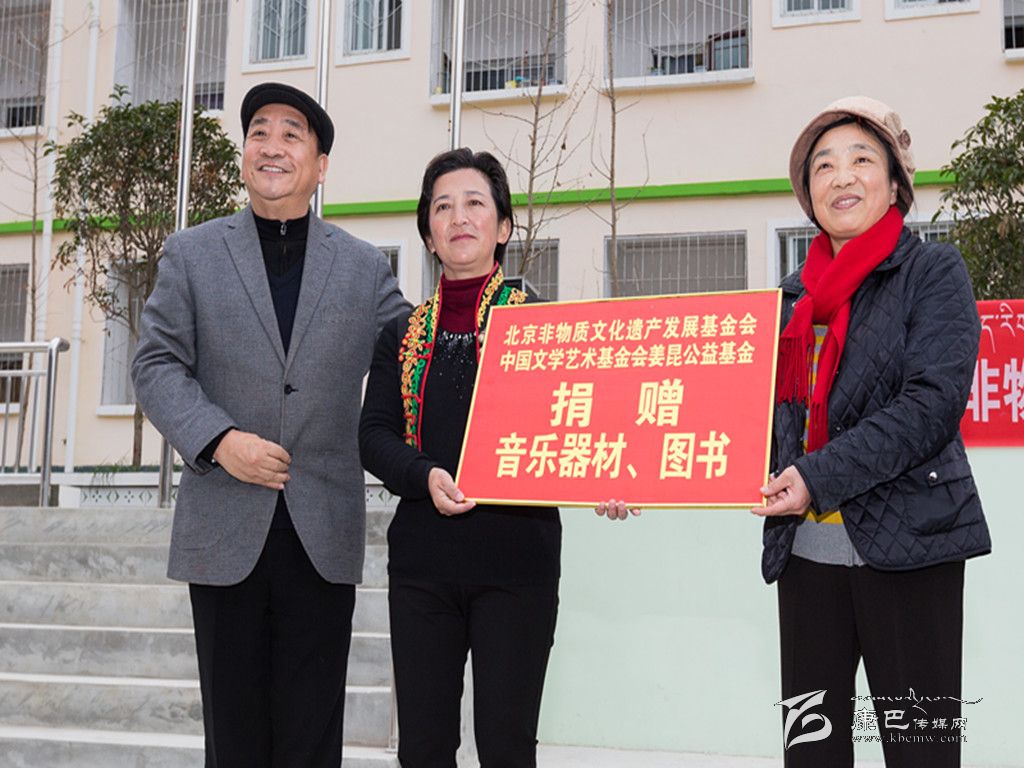 日前,全國政協(xié)委員、北京非物質(zhì)文化遺產(chǎn)發(fā)展基金會(huì)形象大使、中國文學(xué)藝術(shù)基金會(huì)副理事長、中國文藝志愿者協(xié)會(huì)主席姜昆(左)和北京非物質(zhì)文化遺產(chǎn)發(fā)展基金會(huì)第一副理事長史秋秋(右),率團(tuán)來我州援助學(xué)校音樂器材和圖書。圖為瀘定縣貢嘎山小學(xué)李英校長(中)代表我州受贈(zèng)學(xué)校接收贈(zèng)品。(馮光福 攝影報(bào)道)