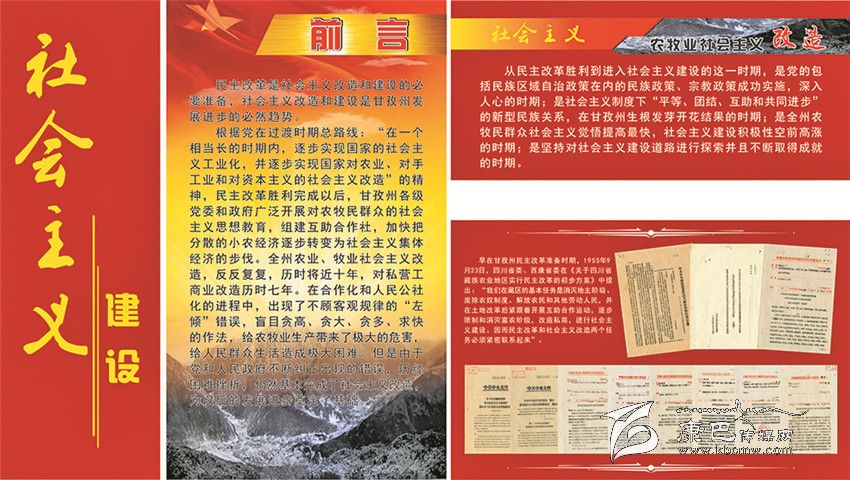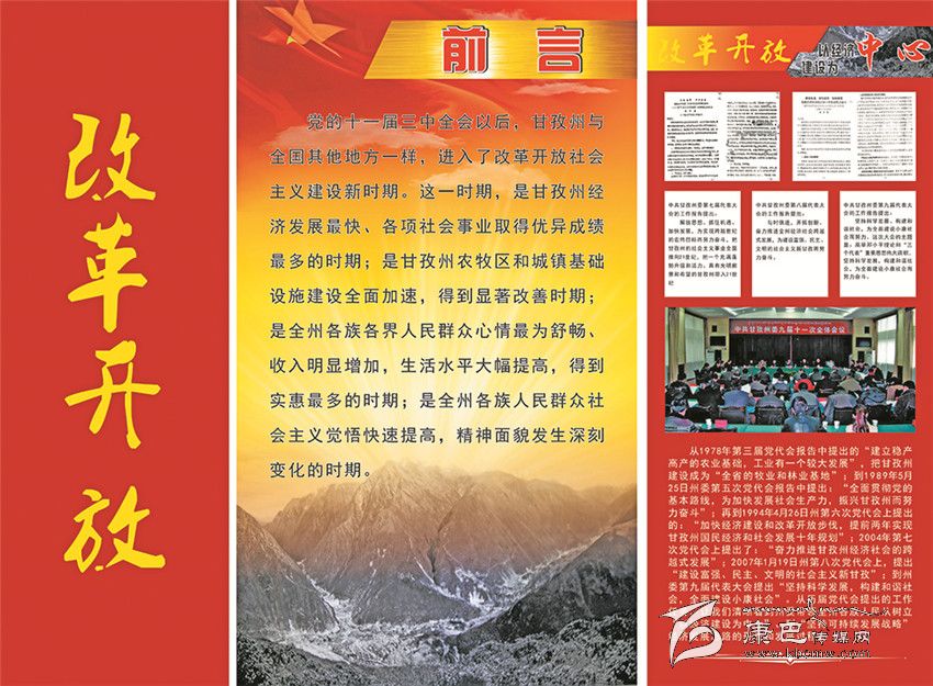 《甘孜州檔案館愛國主義教育基地》的整個展覽分為四大板塊。第一部分命名為“自治政權(quán)的建立”,向參觀者介紹了甘孜藏族自治州誕生的歷史過程;第二部分是“民主改革運(yùn)動”,把人們帶回了那段不能忘記的烽火歲月;第三部分是“社會主義建設(shè)”,深情地回顧了在建設(shè)社會主義事業(yè)中我州所取得的不平凡的成就;第四部分是“改革開放”,讓人們重溫了在改革開放的大潮中所經(jīng)歷的那些充滿激情的經(jīng)歷。