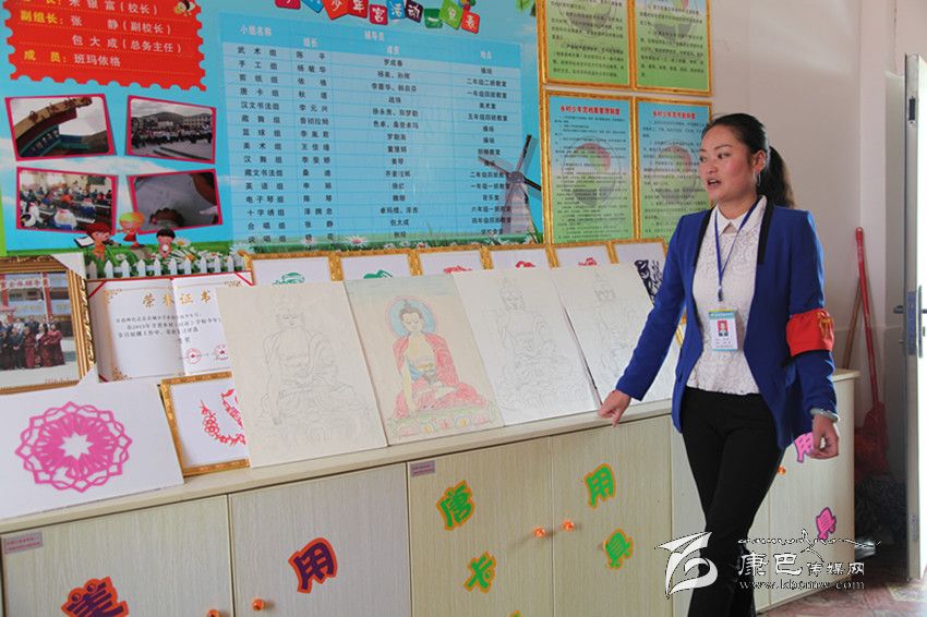 在少年宮作品陳列室,一幅幅精美的唐卡、剪紙、國畫、藏文書法作品和自制的手工藝品吸引了記者的目光。線條流暢的唐卡、生動的剪紙、遒勁的書法,讓這個小小的陳列室充滿了濃濃的“文化味”。