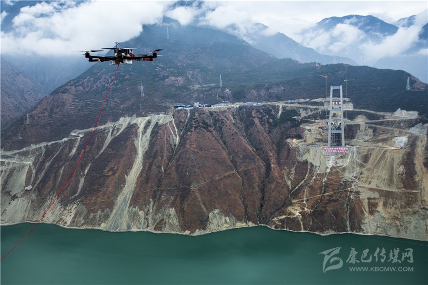 雅康高速C15合同段一分部總工程師張磊說,河谷兩岸立好橋墩,施工隊員運(yùn)用無人機(jī)技術(shù),先把一根較細(xì)的繩子“飛穿”在兩側(cè)橋墩,再運(yùn)用這第一根繩索,運(yùn)送較粗繩索,最后運(yùn)送鋼繩,建立橫跨兩岸的1600多米長的“貓道”——施工隊員屆時彎腰在這里施工。“工人懸在河道上空施工,也會被無處不在的大風(fēng)所包圍?!?/span>