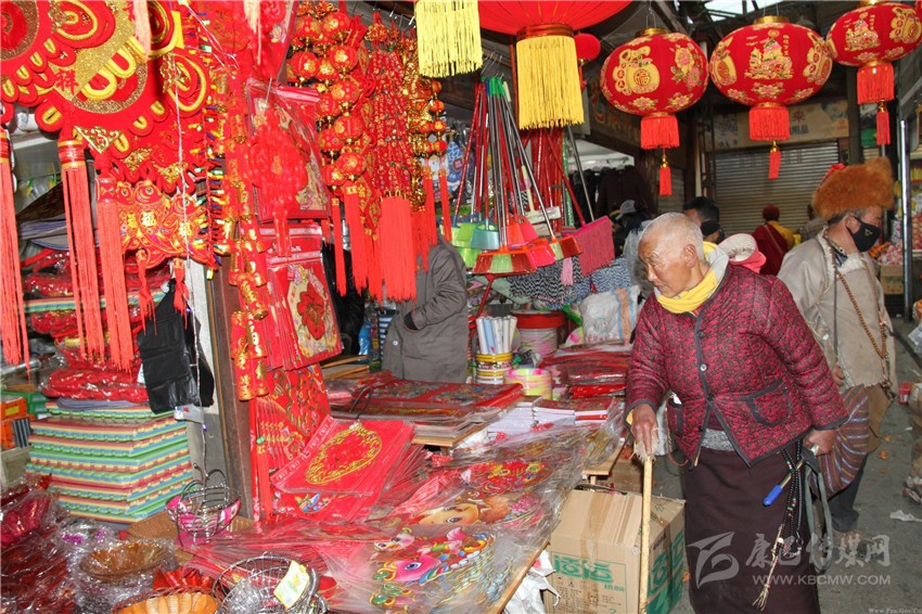 在康定市,無論是在康定民貿(mào)公司各商場、鄰里超市,還是在康定郭達農(nóng)貿(mào)市場,人們關心最多的還是年貨。“2017年是雞年,家里要掛些雞年物件,這不正在選購。”“過年少不了的就是酒、煙、茶和飲料等?!闭谥棉k年貨的市民告訴記者。
