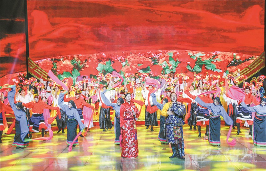 歌曲聯(lián)唱《百花爭(zhēng)艷》,是演出中第一個(gè)讓觀(guān)眾們大呼過(guò)癮的節(jié)目,年僅5歲的澤仁拉姆用一首藏族原生態(tài)歌曲《故鄉(xiāng)》,讓全場(chǎng)觀(guān)眾耳目一新。緊隨而來(lái)的藏族山歌《家鄉(xiāng)美》、漢族歌曲《和諧大家園》、回族歌曲《花兒與少年》、彝族歌曲《 尼雨尼杰》將音樂(lè)的魅力逐級(jí)顯現(xiàn),最后在經(jīng)典歌曲《愛(ài)我中華》中急速升華。6首歌曲風(fēng)格各異,卻又一氣呵成,不僅集中展示了我州藏、漢、回、彝四個(gè)民族的藝術(shù)風(fēng)采,還生動(dòng)展現(xiàn)了我州各族人民其樂(lè)融融、團(tuán)結(jié)進(jìn)步的和諧面貌。