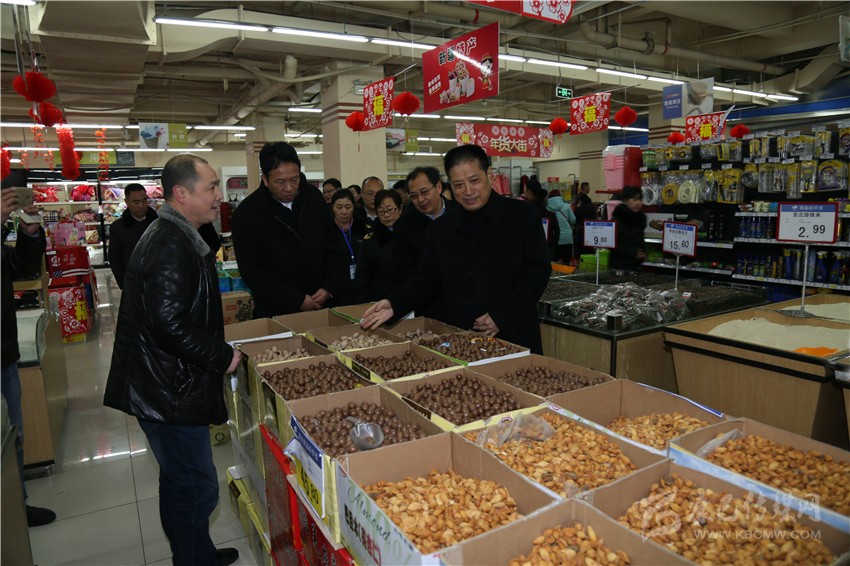 州委書記劉成鳴在超市檢查食品安全。