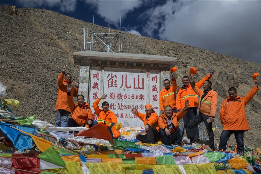 該做的活路做完了,9個(gè)人再一次來(lái)到山埡口那個(gè)立有標(biāo)牌的地方,為他們每一個(gè)人拍下了一張紀(jì)念照,他們說(shuō)雀兒山將不會(huì)再有道班房了,這張照片就是他們永遠(yuǎn)的紀(jì)念。說(shuō)完他們從懷中掏出才從山下買來(lái)的龍達(dá),這是藏族人民驅(qū)災(zāi)祈福的信物,迎著呼呼的大風(fēng),揚(yáng)手拋上了藍(lán)天。不知是誰(shuí)發(fā)出了哭聲,于是9個(gè)人都哭了,9個(gè)漢子的哭聲在5050米的高度揮撒開(kāi)來(lái)是何等的豪邁!