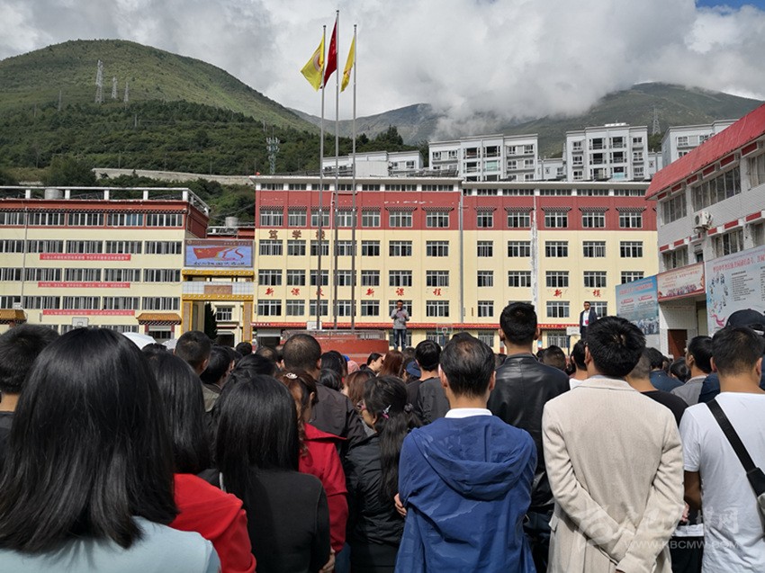 本網(wǎng)訊 9月3日,是康定中學(xué)開學(xué)的日子。清晨,學(xué)校操場國歌聲嘹亮,五星紅旗冉冉升起, 學(xué)校全體師生員工5000余人參加了開學(xué)典禮暨升國旗儀式。