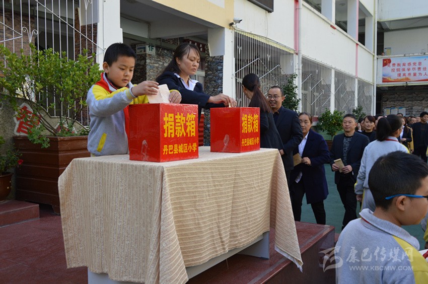 丹巴縣城區(qū)小學(xué)師生踴躍捐款。