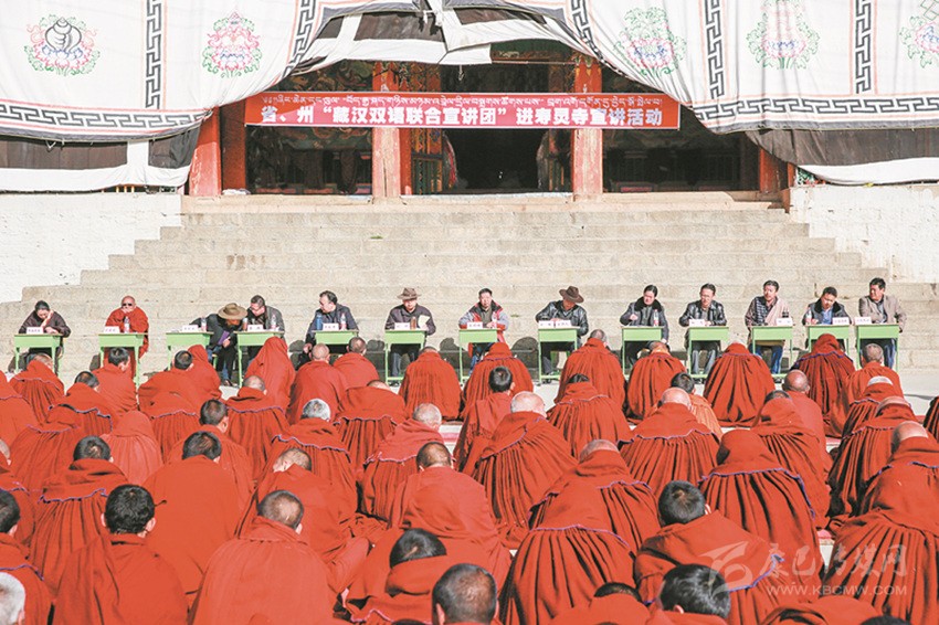在法律進(jìn)寺廟方面,我州持續(xù)深化法律進(jìn)寺廟“四進(jìn)七有”活動(dòng),健全完善寺廟法治宣傳欄、法律圖書角、法律服務(wù)聯(lián)系點(diǎn)、法律明白人管理等工作制度,建成寺廟法治宣傳欄598個(gè)、圖書角504個(gè)、法律服務(wù)聯(lián)系點(diǎn)489個(gè),培訓(xùn)培養(yǎng)寺廟“法律明白人”947人;組織開展《憲法》《刑法》《刑事訴訟法》《國家安全法》《治安管理處罰法》《道路交通安全法》《宗教事務(wù)條例》進(jìn)寺廟專項(xiàng)活動(dòng),全州共開展法律入寺宣傳1900余場(chǎng)次,覆蓋寺廟532座、僧尼8萬余人次。