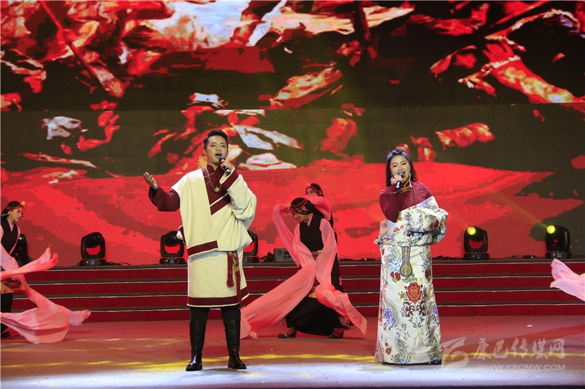 隨后以三個(gè)“新”字為主題的篇章,更是彰顯了民族風(fēng)情、甘孜風(fēng)格、時(shí)代風(fēng)貌。挖掘民族素材、彰顯民族文化,甘孜歌舞團(tuán)以格薩爾傳說(shuō)為“藍(lán)本”,推陳出新表演的《格薩爾仲肯》,讓民族文化熠熠生輝;民族文化需傳承,少年強(qiáng)則甘孜強(qiáng)。德格縣中學(xué)少兒則噶表演的《吉祥頌》,讓人感到后生可畏,贏得陣陣掌聲;富有激情的朗誦、珠聯(lián)璧合的配樂(lè),《甘孜與祖國(guó)相約出發(fā)》讓現(xiàn)場(chǎng)觀眾真切地感受到了盛世中華,真情贊美幸福美好的新生活;歌曲大聯(lián)唱《如歌歲月》通過(guò)不同時(shí)代的代表性歌曲,唱出了甘孜兒女愛祖國(guó)、愛家鄉(xiāng),感黨恩、思奮進(jìn)的真摯情懷;由州歌舞團(tuán)和爐霍、丹巴、德格、巴塘等縣藝術(shù)團(tuán)聯(lián)袂上演的《幸福大家庭》,既有漢族歌舞《祝福祖國(guó)》、藏族舞蹈《放牧人》、蒙古族舞蹈《送親》、彝族舞蹈《彝家情》、回族舞蹈《花兒》,更是彰顯了民族團(tuán)結(jié)的大主題,為我州創(chuàng)建全國(guó)民族團(tuán)結(jié)進(jìn)步示范州擂鼓助威。