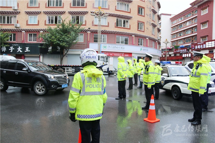 康定市交警大隊人員正在州文化館點位為過往車輛服務(wù)。