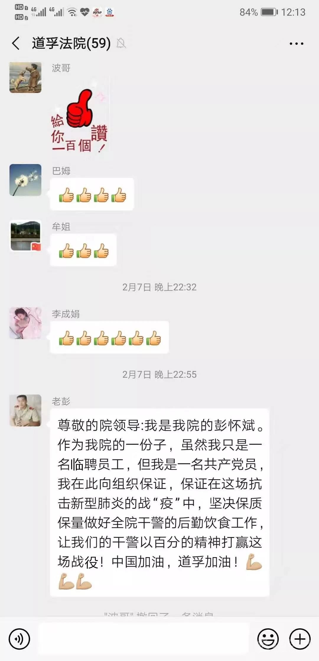 彭懷斌向院黨組作出鄭重承諾:“作為我院的一份子,雖然只是一名臨聘員工,但我是一名共產(chǎn)黨員,我在此向組織保證,保證在這場抗擊新冠肺炎的戰(zhàn)‘疫’中,堅決保質(zhì)保量做好全院干警的后勤飲食工作,讓我們的干警以百分的精神打贏這場戰(zhàn)役!中國加油!道孚加油!” 特殊時期,為了保證食材的絕對安全,廚房沒有幫手,所有工序都需要他一手一腳完成,任務有多重可想而知。
