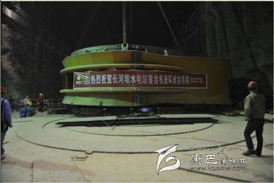 當(dāng)日下午15時,隨著現(xiàn)場總指揮下達指令:“座環(huán)吊裝開始!”。橋機操作工在地面人員的指揮下,緩緩啟動橋機,直徑11.42米、重達330噸的長河壩水電站4號機座環(huán)被緩緩吊離地面,經(jīng)4名安全員確認安全后,操作工平穩(wěn)地操作橋機吊運著座環(huán),慢慢地駛向主廠房最深處的4號機組安裝現(xiàn)場。