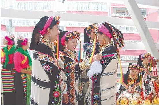 昨日早7時,記者在康定北門體育館2號入口見到不少演職人員正席地而坐、背靠背閉目養(yǎng)精蓄銳。來自雅江縣的演職人員張巴登告訴記者,他們凌晨3點就起床作準(zhǔn)備,4點就來到場館內(nèi)候場。辛苦訓(xùn)練了近一個月,今天是真正檢驗成果的時候,張巴登表示心里既緊張又期待,但他相信所有的演職人員一定會發(fā)揮出最好的水平,給大家?guī)硪粓鼍实难莩觥?粗詭v的面容,記者不忍心繼續(xù)打擾,匆匆結(jié)束了采訪。
