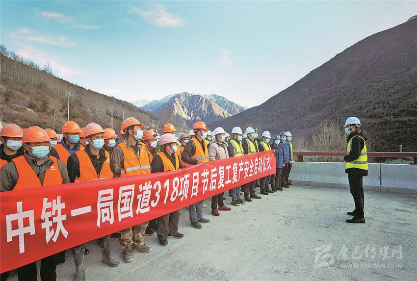 中鐵一局國道318線康定市過境段公路工程項目舉行復工儀式。