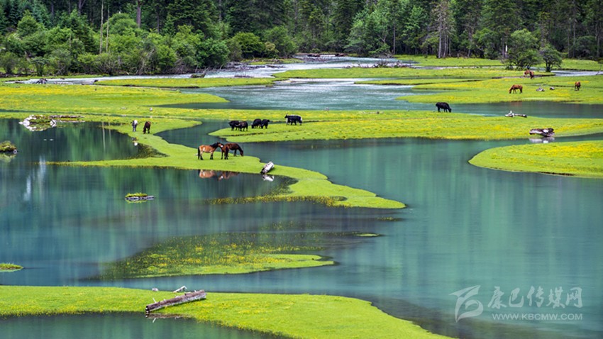 在甘孜州黃河流域第一鄉(xiāng)——長沙貢馬鄉(xiāng),查曲河支流哥得爾給曲流域綠草如茵、野花盛開。