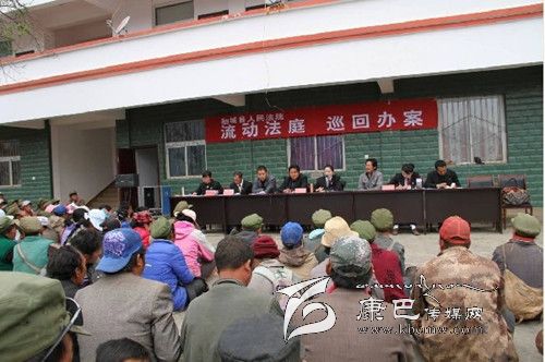 香格里拉人民法庭坐落于距“稻城亞丁國家級風(fēng)景區(qū)”僅30公里的稻城縣香格里拉鎮(zhèn)。該法庭轄區(qū)為貢嶺、東義兩個片區(qū)以及香格里拉鎮(zhèn)的14個行政村、1個社區(qū)。轄區(qū)面積達4000余平方公里。轄區(qū)內(nèi)以山區(qū)為主,道路崎嶇、交通不便,海撥、地域跨度大,最大的落差近3000米,距轄區(qū)內(nèi)最遠的鄉(xiāng)鎮(zhèn)100公里。