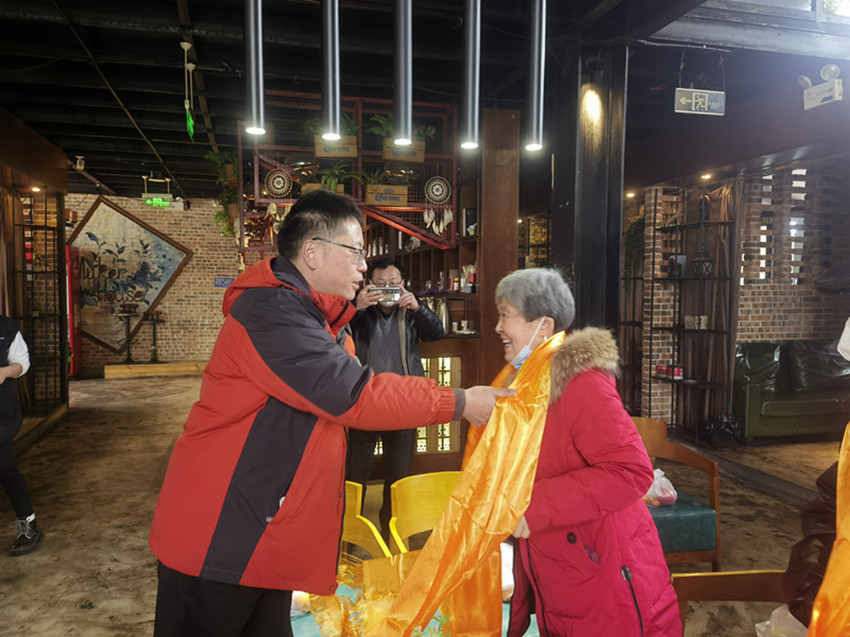 在溫江區(qū),工作組專程登門看望了今年已經(jīng)91歲高齡的離休干部荊祿常,與他聊家常,向他致以新春的問候,并表示,老干部是我們的寶貴財(cái)富,希望他保重身體,一如既往地關(guān)心支持報(bào)社發(fā)展。