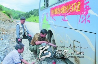 爆胎了,大家齊動手