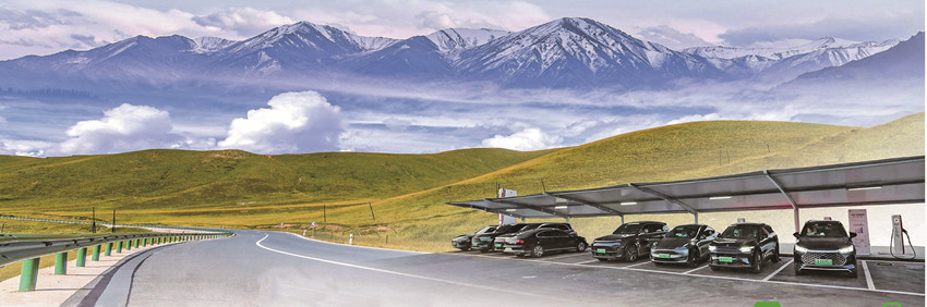 游客車輛正在理塘縣“天空之城”主題服務區(qū)液冷超充站充電。本報資料庫圖