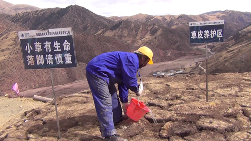 據(jù)介紹,施工前工作人員先將施工區(qū)域的原生草皮進行剝離,移至他處并進行養(yǎng)護,待施工結(jié)束后,再將剝離的草皮移回原處進行回鋪;對開挖造成地表植被破壞的地段播撒適合高原生長的草籽,直到長出綠草?,F(xiàn)場的施工人員介紹說,塔基開挖過程中,先將熟土(表土)、生土分開堆放,并采取隔離(鋪設(shè)棕墊等)、攔擋、覆蓋等措施,回填時先將生土回填,熟土最后置于表面,以保證植被的恢復(fù)。