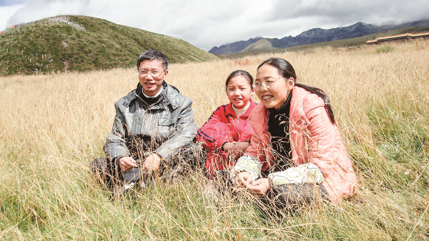 一家三口笑對(duì)高原生活。